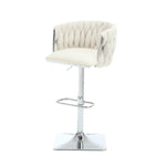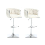 Elevate your living space with the Bar Stools Set of 2, featuring an elegant woven backrest and a stable silver base. These bar stools are upholstered in luxurious ivory boucle fabric, providing a soft-touch experience and high-density sponge cushions for long-lasting comfort. The stools are height adjustable from 65 cm to 83 cm and offer a 360-degree swivel, making them perfect for any counter, kitchen island, or pub setting. Easy to assemble with all necessary hardware included, these stools are a stylish and practical addition to any modern home.