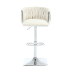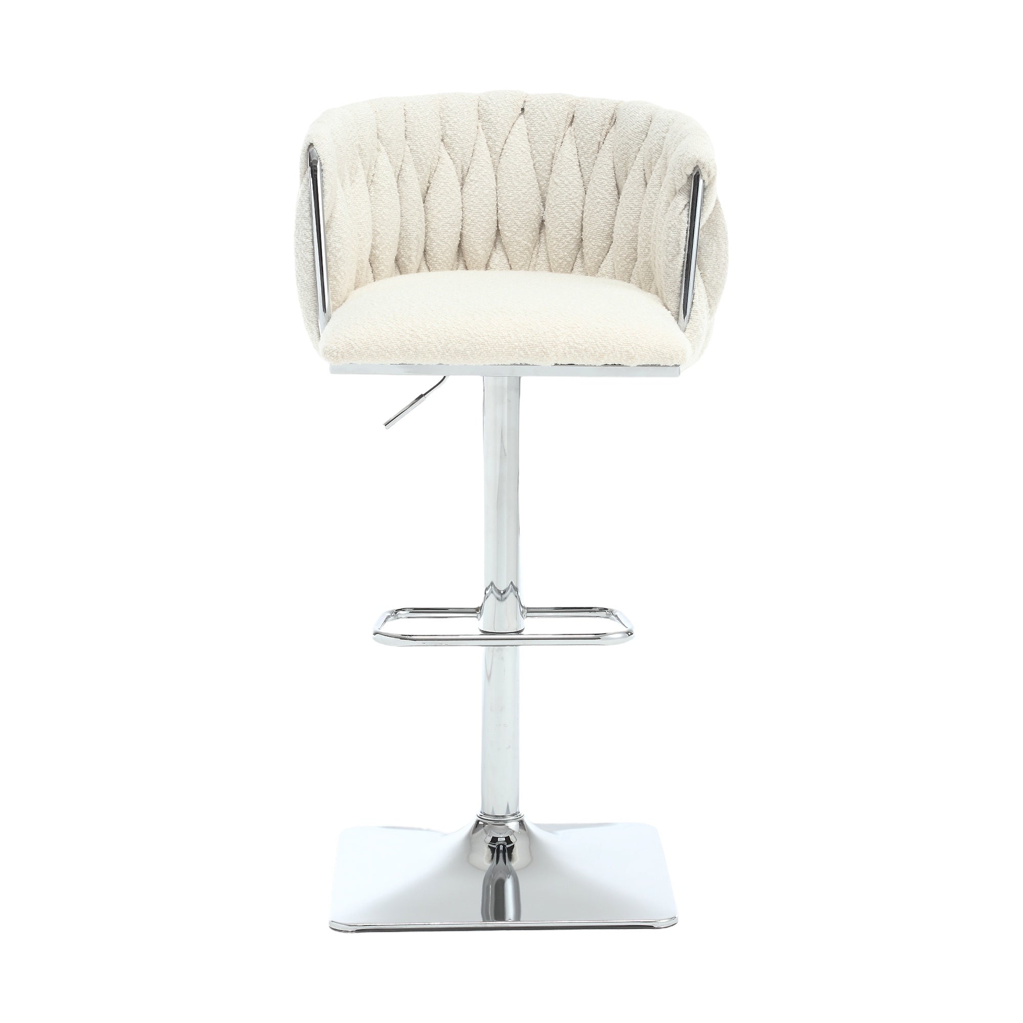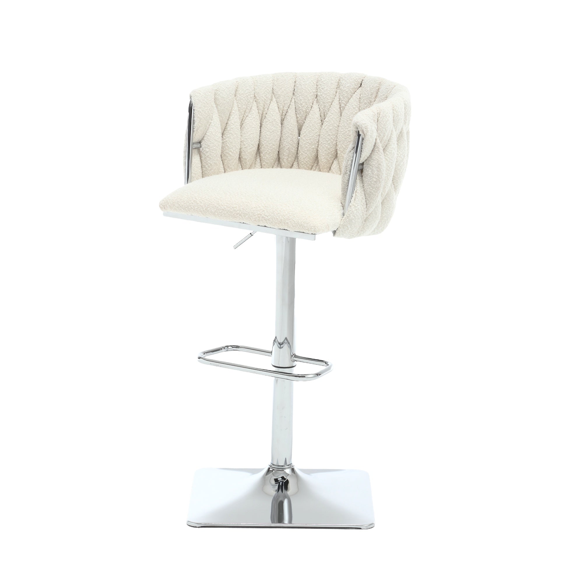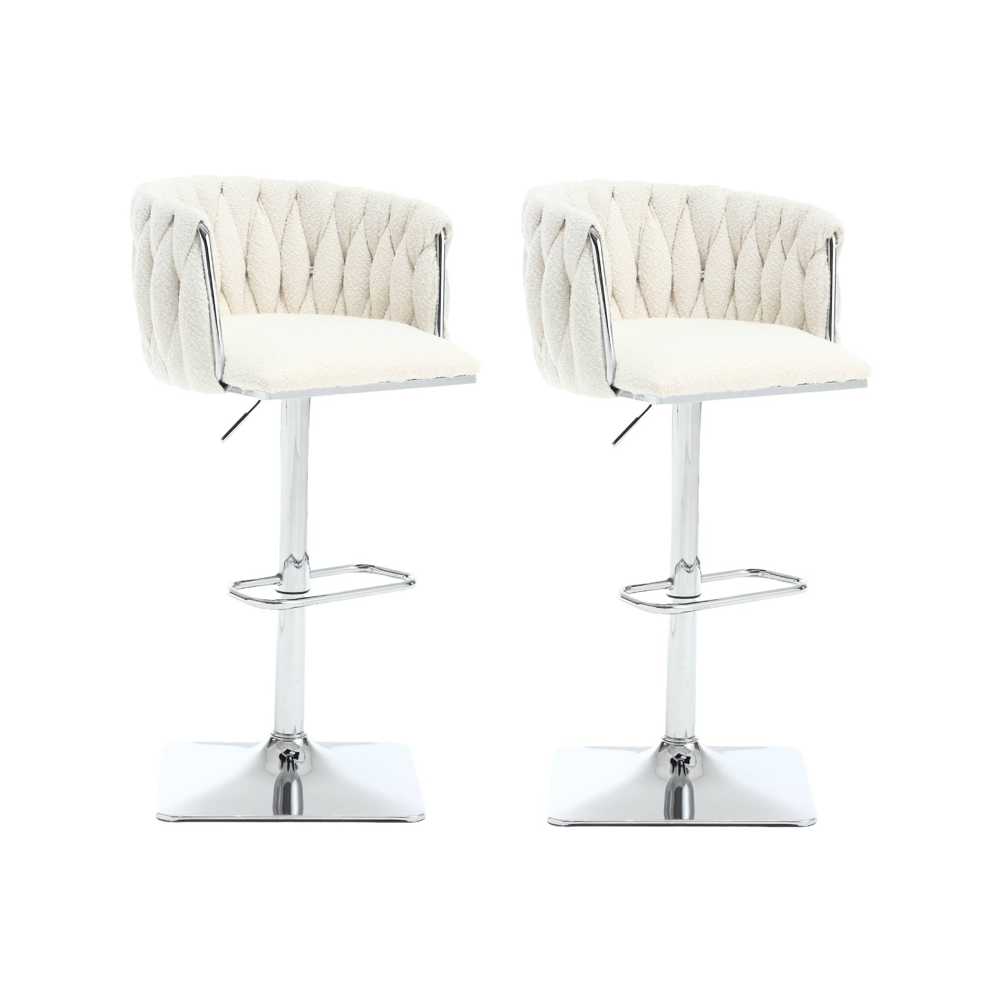 Adjustable Bar Stools Set of 2 with Woven Backs and Silver Base, Upholstered Boucle Fabric, for Kitchen Island and Pub, 53x51x87 cm, Ivory