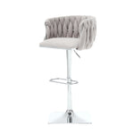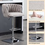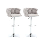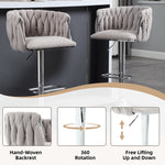 Elevate your living space with the Bar Stools Set of 2, featuring a chic woven backrest and a sleek silver base. These bar stools are upholstered in grey boucle fabric, providing a soft-touch experience and a high-density sponge cushion for lasting comfort. The stools are height adjustable from 65 cm to 83 cm and offer a 360° swivel, making them versatile for any kitchen island, bar, or farmhouse setting. Easy to assemble with all necessary hardware included, these stools combine modern elegance with practical functionality.