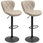 Bar Stools, Set of 2 Breakfast Bar Chairs, Swivel Barstools with Backrest and Footrest, Steel Frame Diamond Pattern PU, for Kitchen Counter, Dining Room, Light Khaki