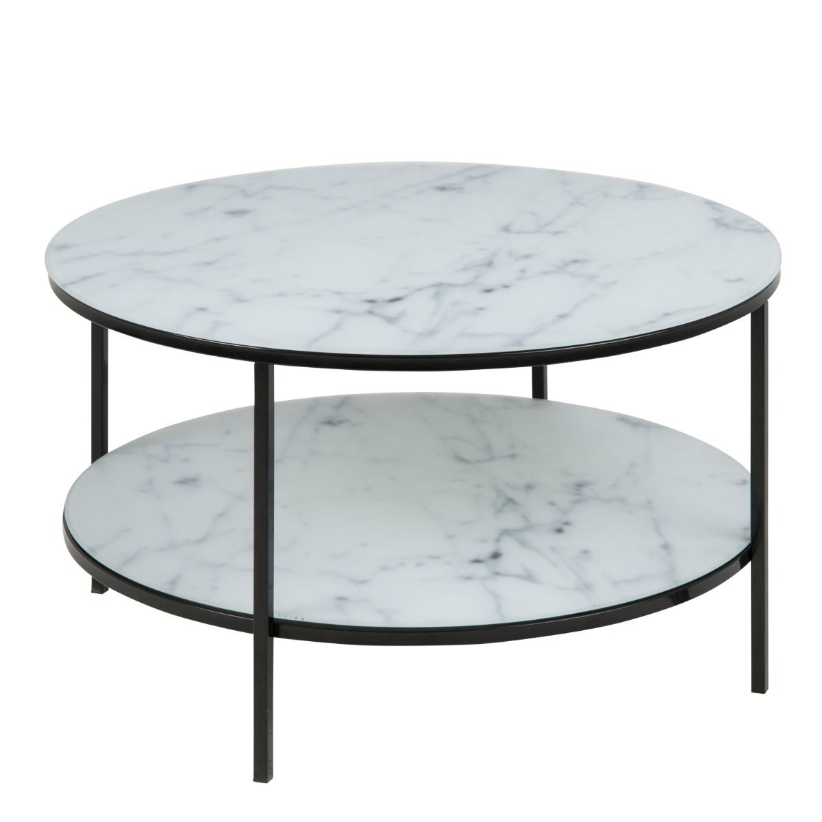 Alisma Round Coffee Table with Marble Effect Top & Black Legs
