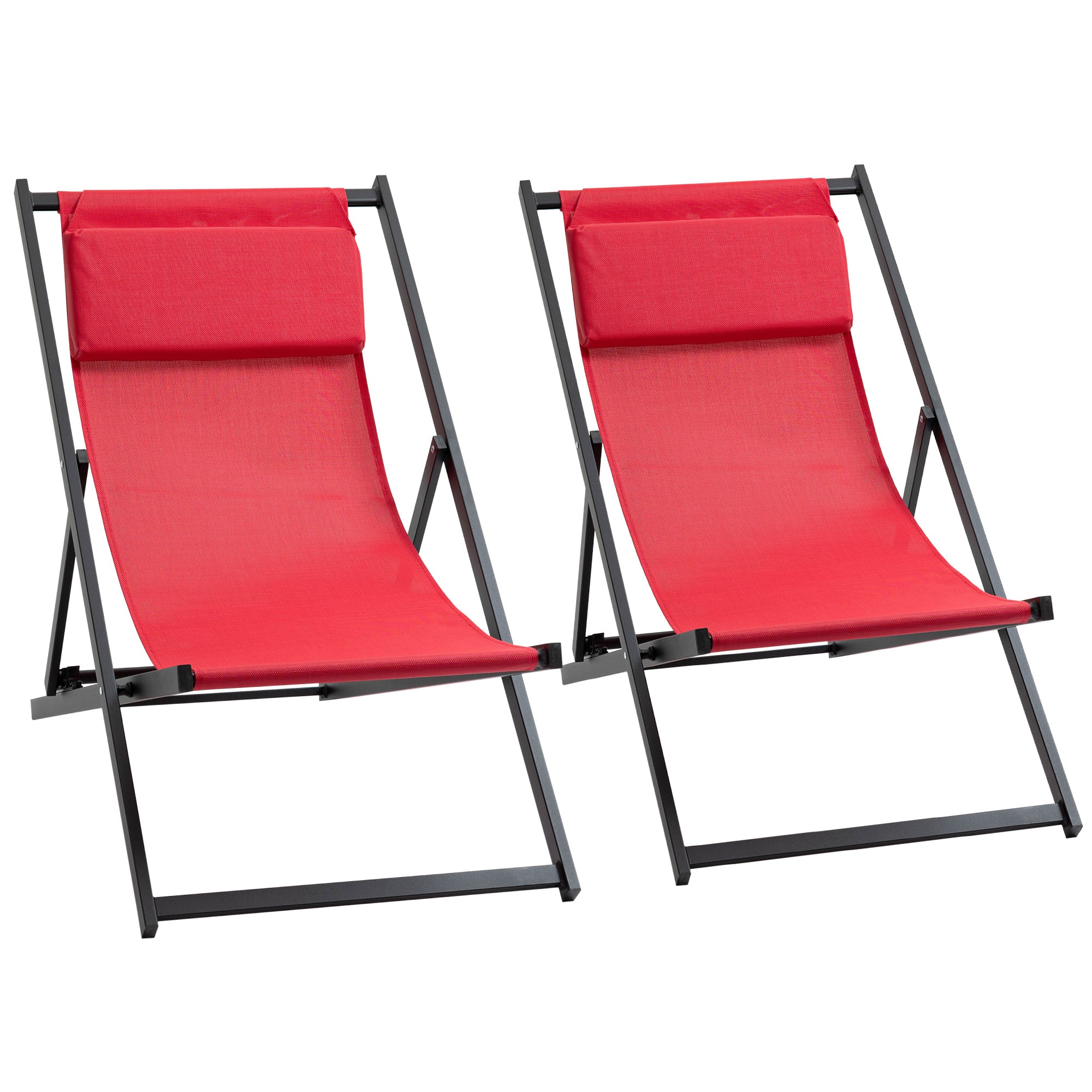 Set of 2 Folding Garden Beach Aluminium Frame Deck Chairs Deckchairs Seaside Folding Garden Patio Lounger, Red