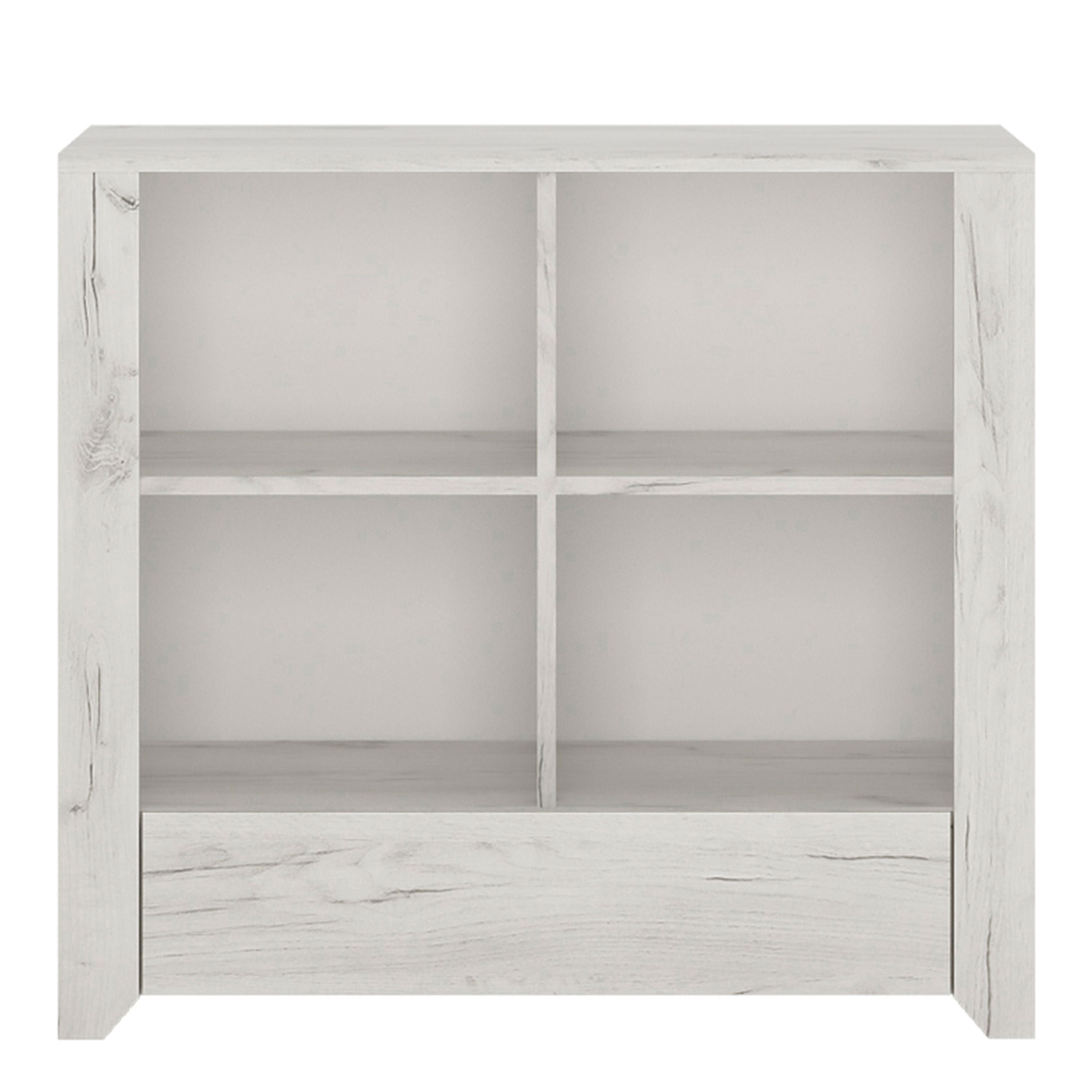 Angel 1 Drawer Low Bookcase in White Craft Oak