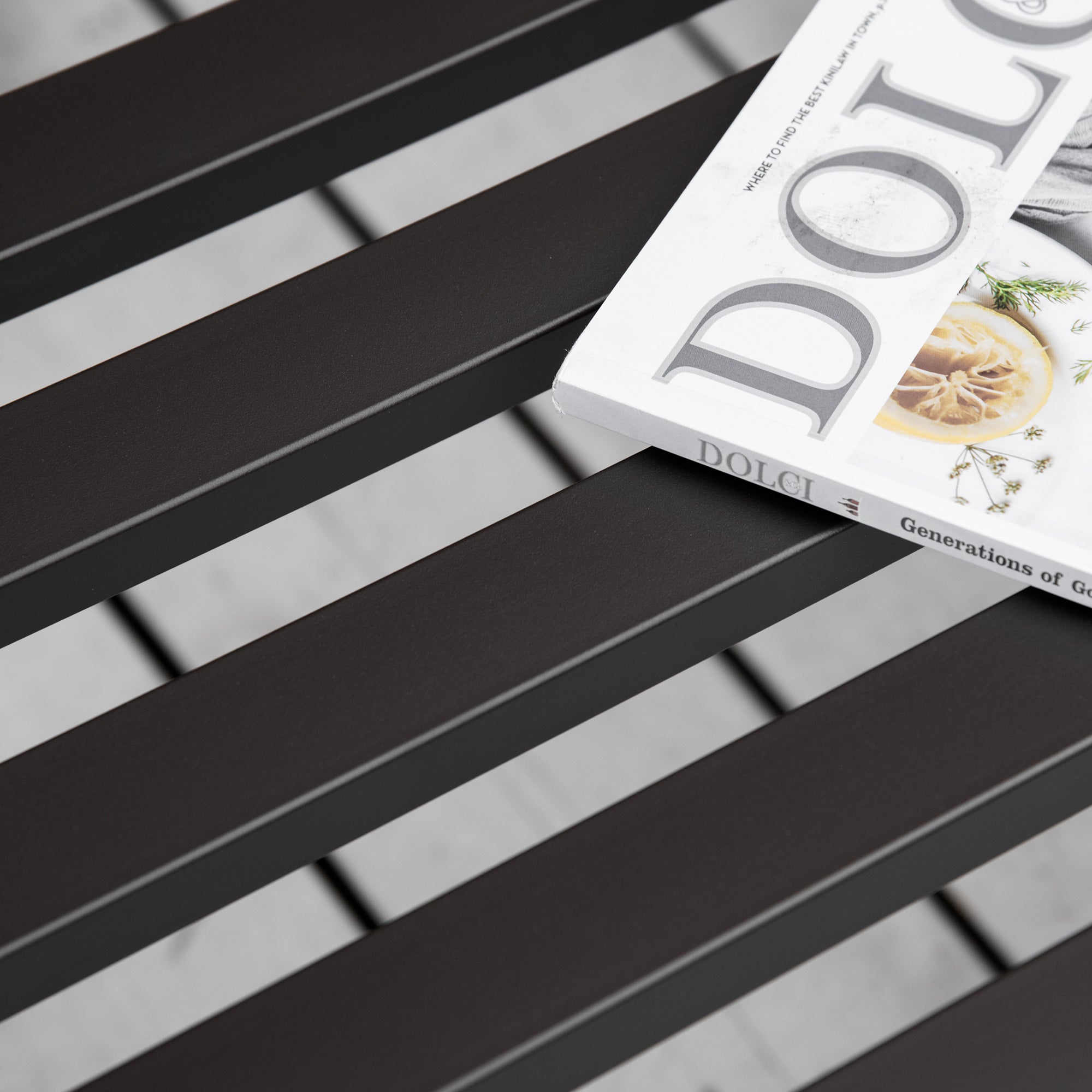 Take time to yourself or with some company - do it with this two-seater bench. It's made from steel so it's tough - with a powder coating for protective strength. The seat is gently curved to work with your body shape better, with a high back and armrests for support. There's a cut-out pattern on the back for style and can be customised to how you want - weaving flowers and materials there as an idea. To keep looking its best, we recommend using a protective furniture cover.