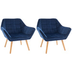 Armchair Accent Chair, Vanity Chair with Wide Arms, Slanted Back, Padding, Metal Frame, Wooden Legs, Home Bedroom Furniture Seating, Set of 2, Blue