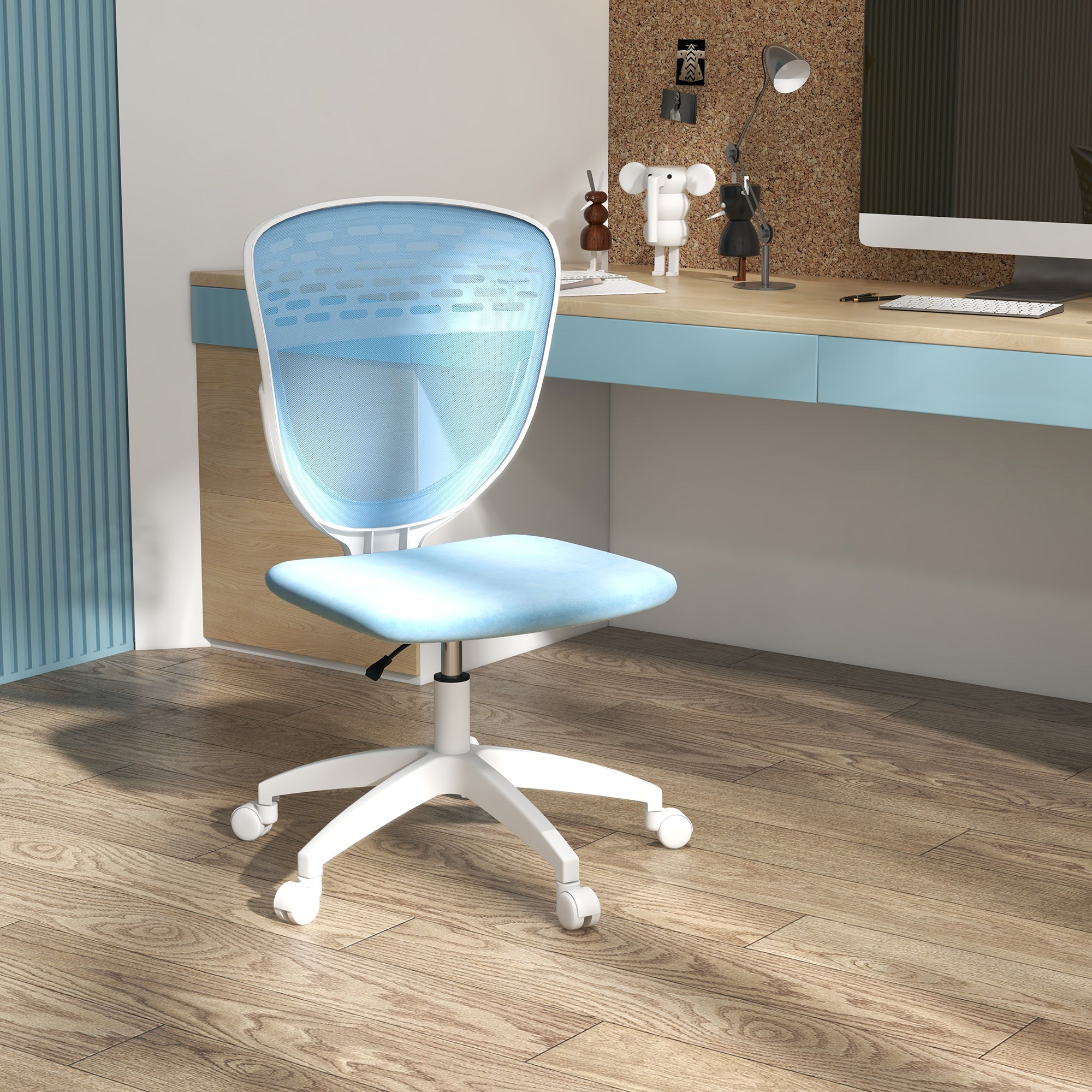 Armless Desk Chair, Mesh Office Chair, Height Adjustable with Swivel Wheels, Blue