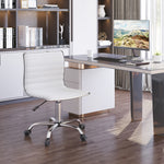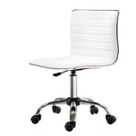 Adjustable Swivel Office Chair with Armless Mid-Back in PU Leather and Chrome Base - White