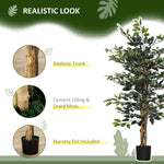 Artificial Ficus Tree in Pot, 130cm Tall Fake Plant with Lifelike Leaves and Natural Trunks, for Indoor Outdoor, Green