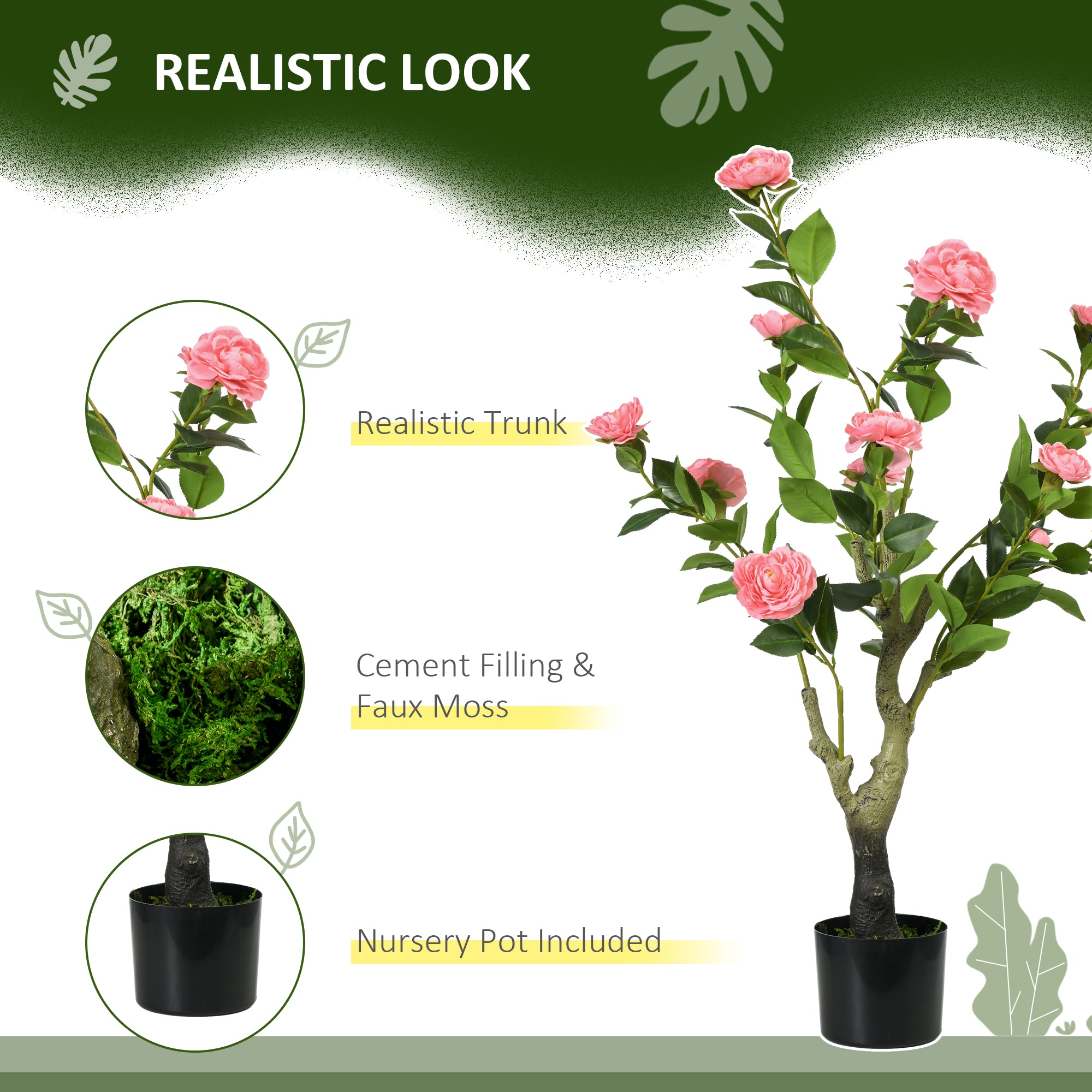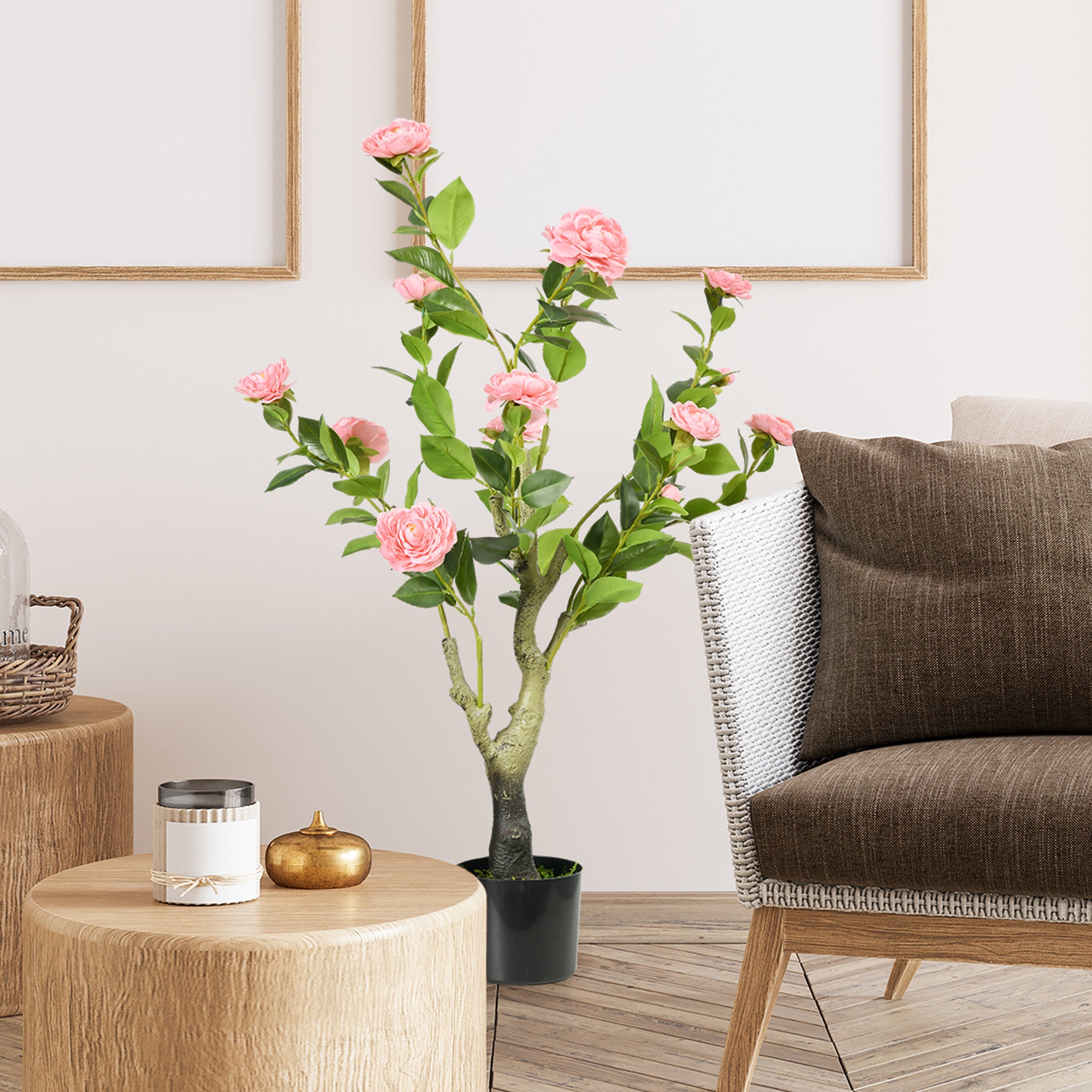 Artificial Plant Camellia Flower in Pot, Fake Plant for Indoor Outdoor, 95cm, Pink