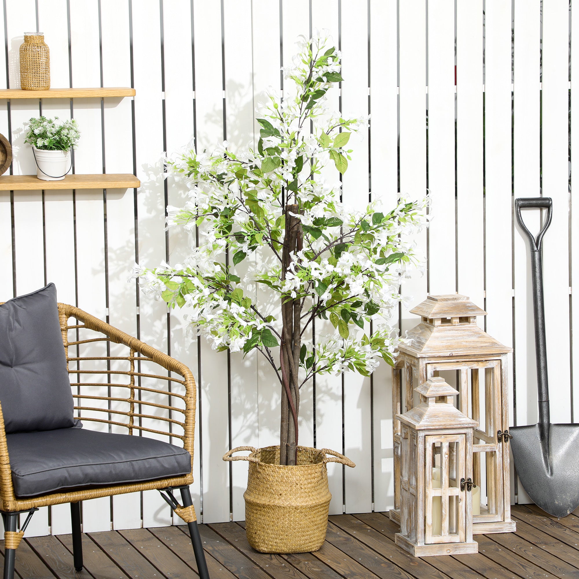 Artificial Plants Honeysuckle Flower in Pot Fake Plants with Curved Boots for Indoor Outdoor 15x15x150cm White