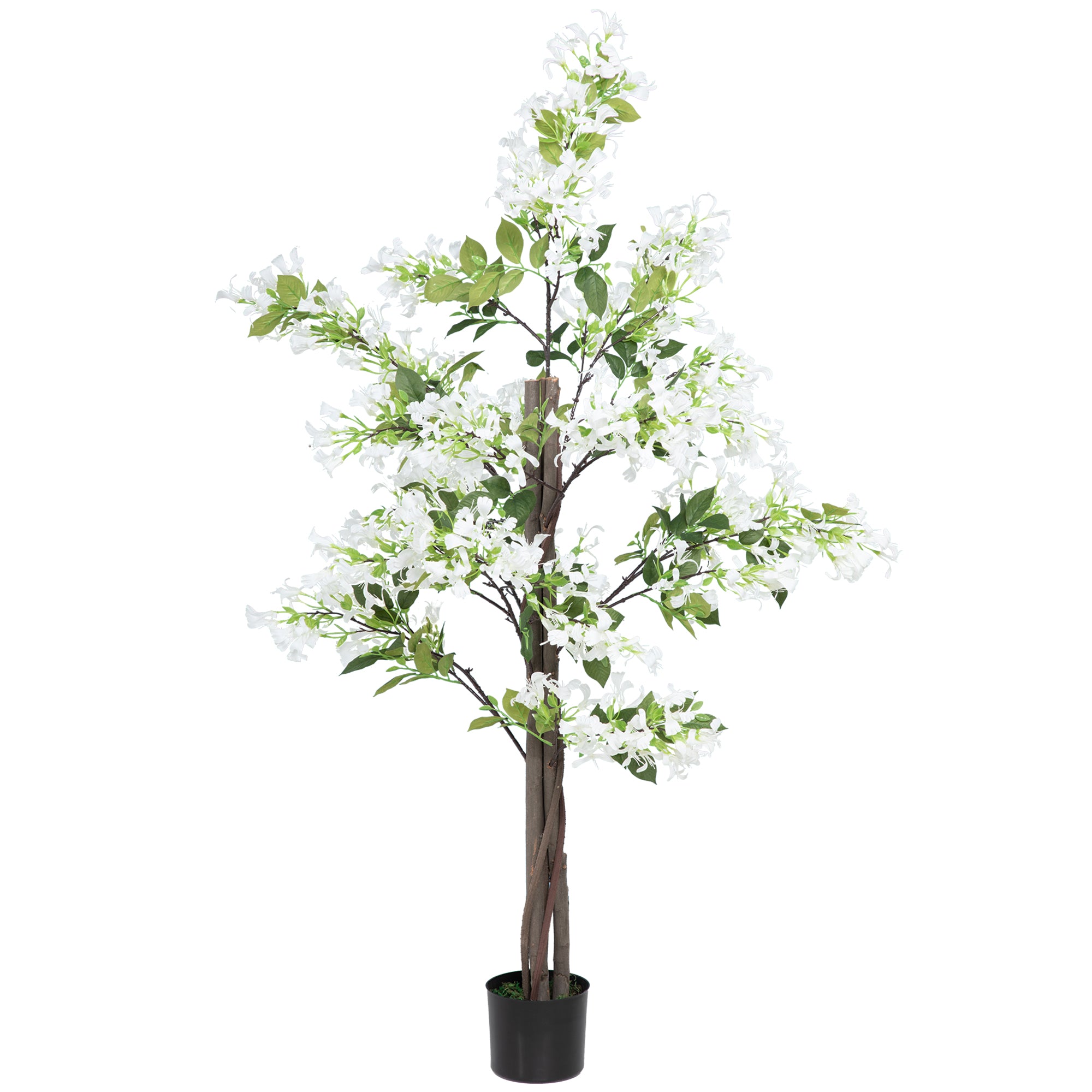 Bring natural beauty into the home without upkeep - pick this faux honeysuckle tree,, for a breath of life this season and beyond. Made from plastic for extended lifespan, it boasts realistic colours and textures, with 672 flowers - looking like the real thing. The faux design means zero maintenance too - will keep looking the same even without any water. Finished with a cement-filled pot so it stands upright, wherever it is placed.