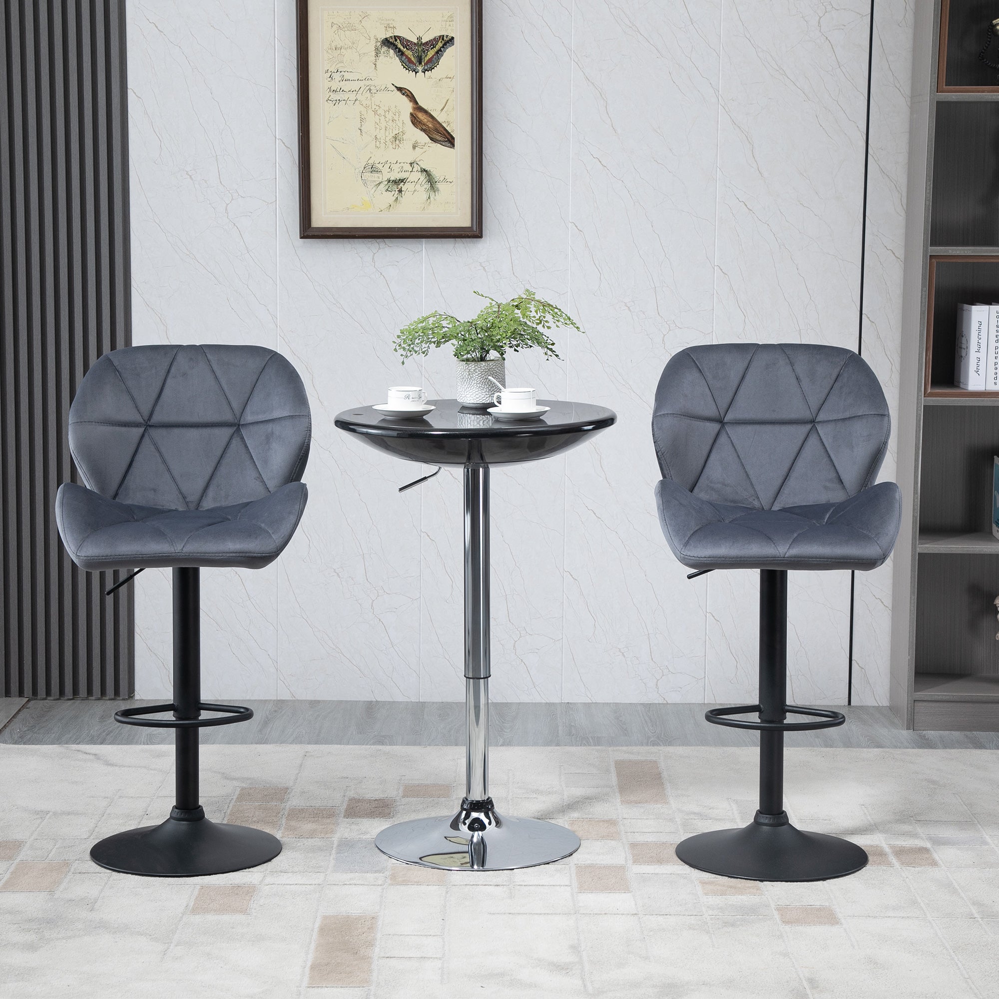 Adjustable Bar Stools Set of 2, Armless Upholstered Swivel Counter Chairs, Barstools with Back, Footrest, Dark Grey