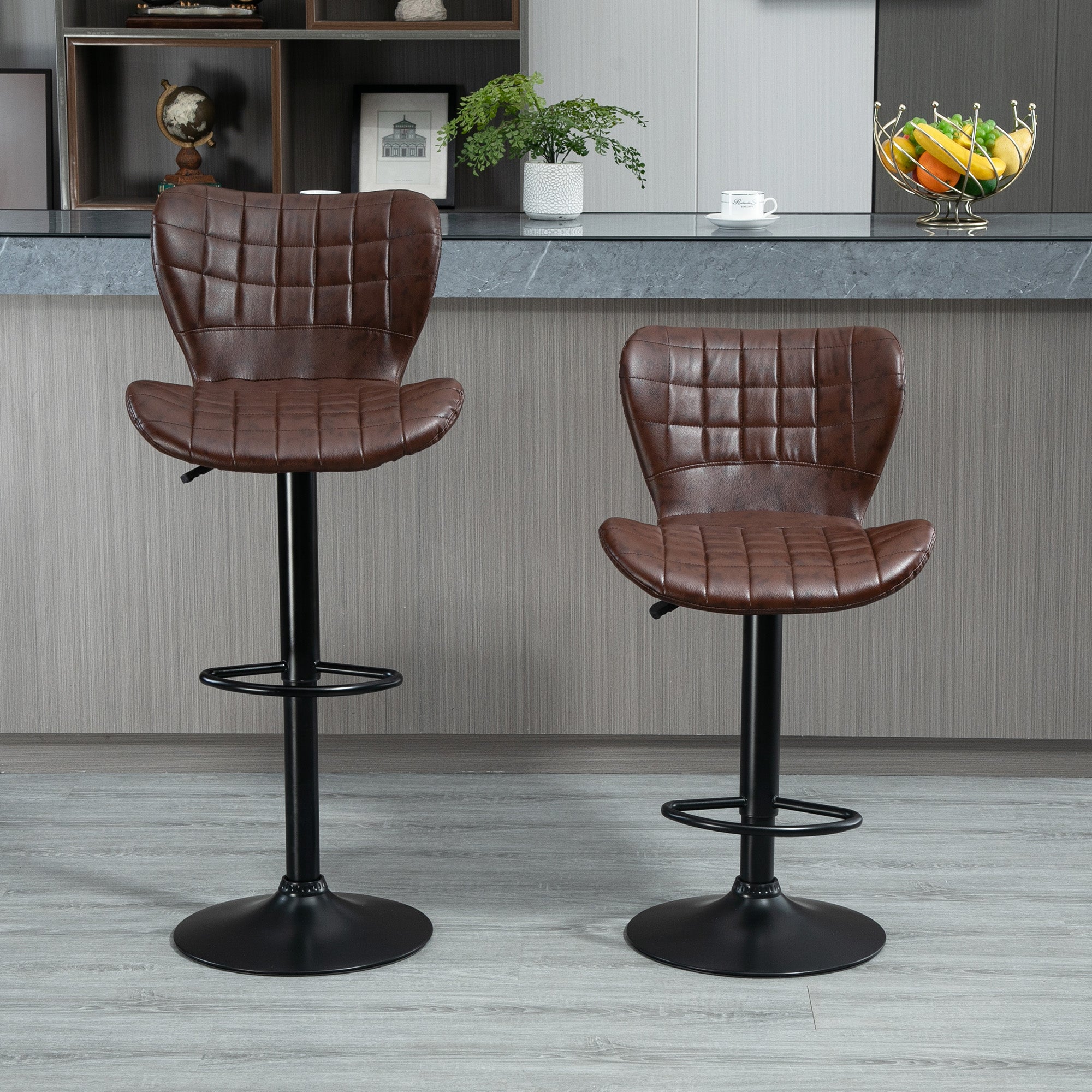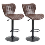 Bar Stools Set of 2 Adjustable Height Swivel Bar Chairs in PU Leather with Backrest & Footrest, Brown