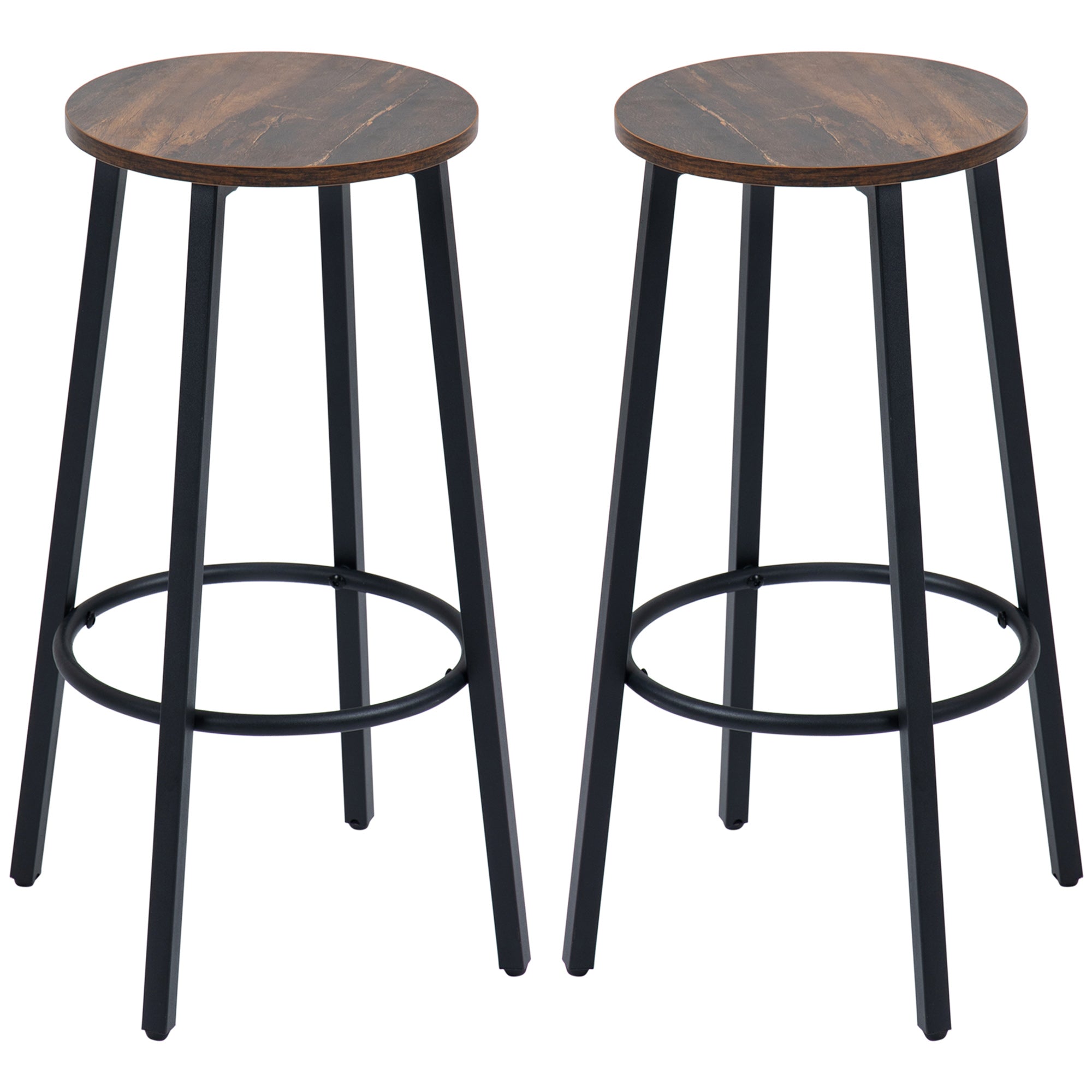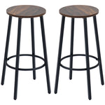 Bar Stools, Set of 2 Kitchen Breakfast Stools with Sturdy Steel Frame, Industrial Tall Bar Chairs, 65cm High Seat, Rustic Brown