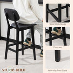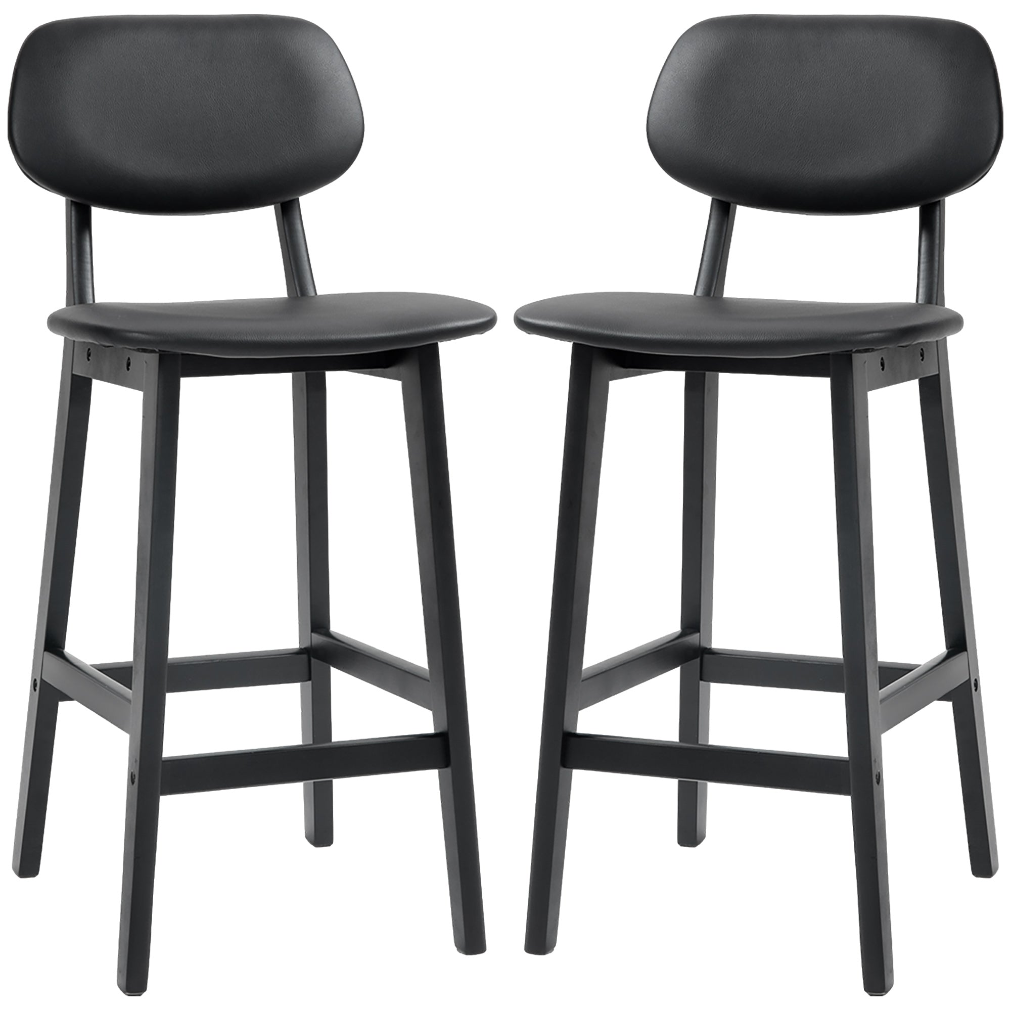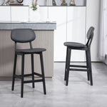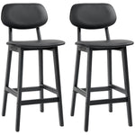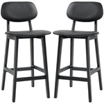 Set of Two Wooden Classic Bar Stools, with Faux Leather Seats - Black
