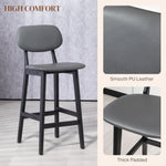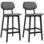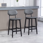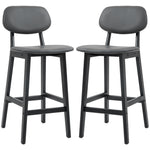Bar Stools Set of 2, Contemporary Breakfast Bar Chairs, Faux Leather Upholstered Kitchen Stools with Backs and Solid Wood Legs, Dark Grey