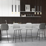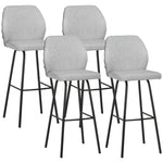 Bar Stools Set of 4, Linen-Touch Upholstered Bar Chairs, Kitchen Stools with Backs and Steel Legs for Dining Room, Light Grey