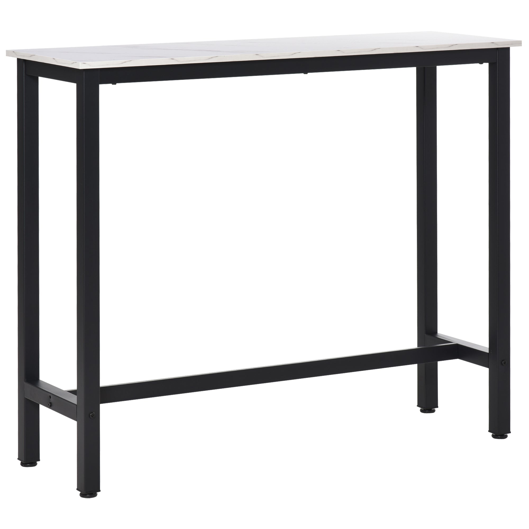 Bar Table Breakfast Marble Grain Dining Table Coffee Table with Adjustable Footpads, 120x40x100cm, White & Black