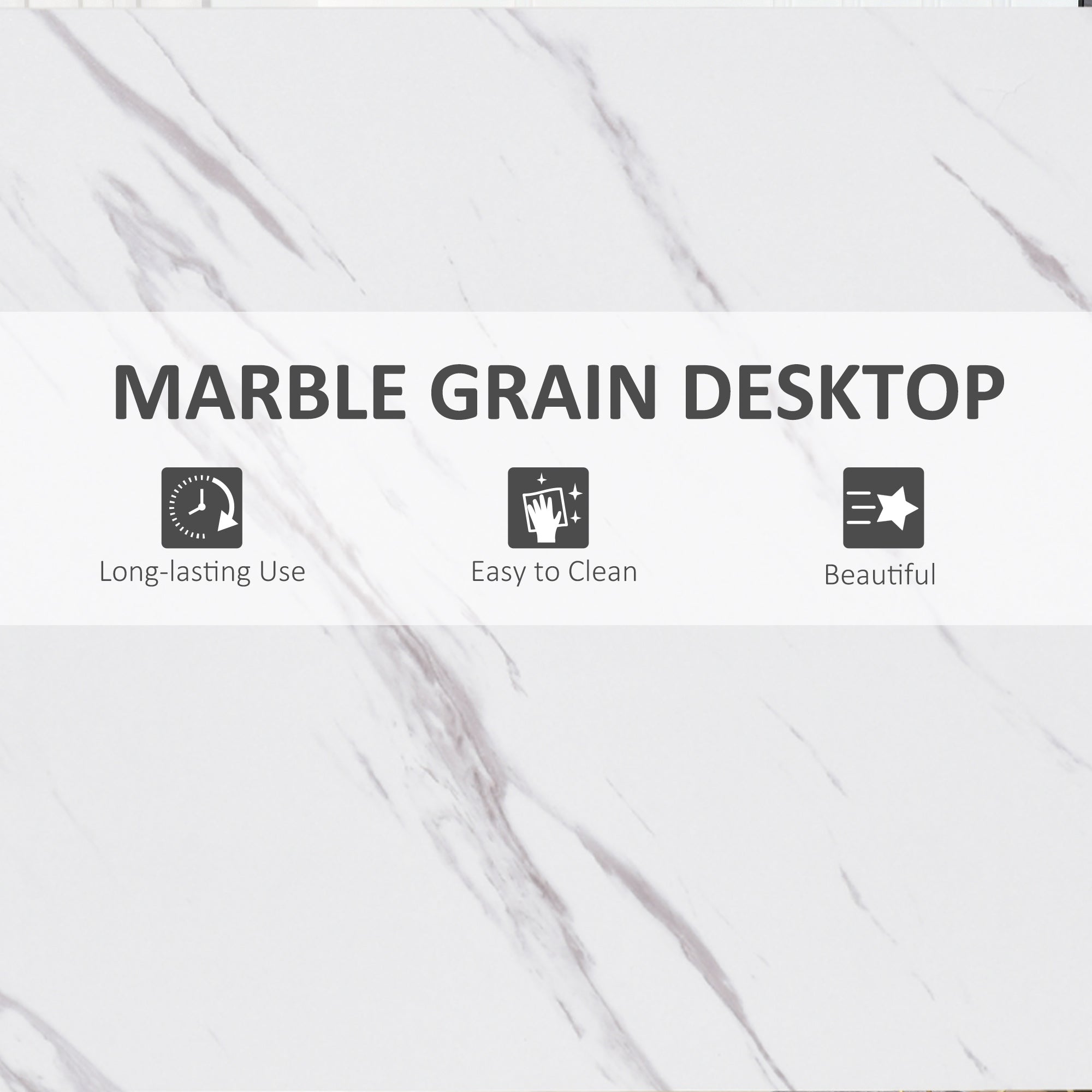 Clean-lined steel frame with marble grain desktop makes it a great fit in a modern setting