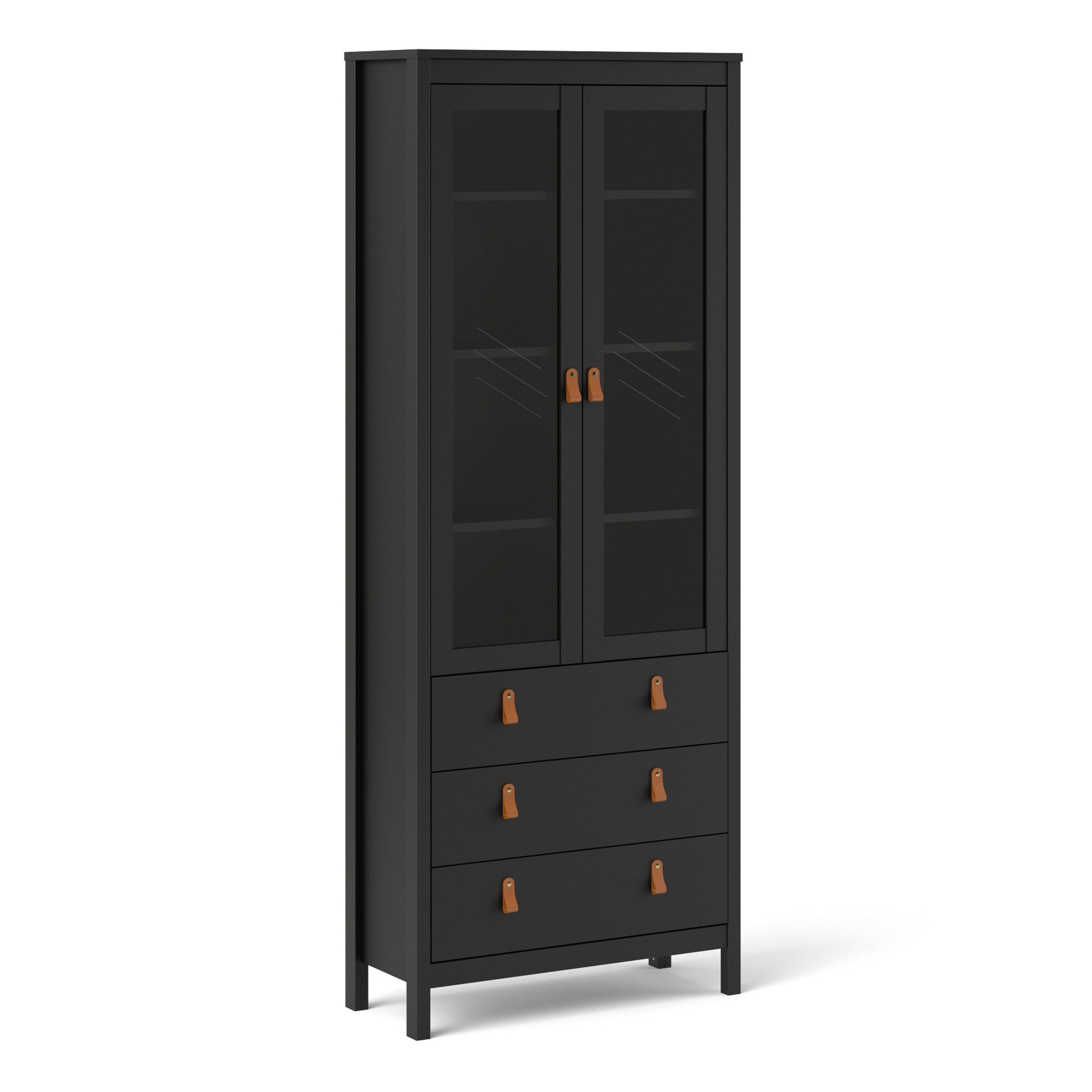Barcelona China Cabinet 2 Doors w/Glass + 3 Drawers in Matt Black