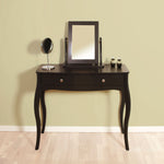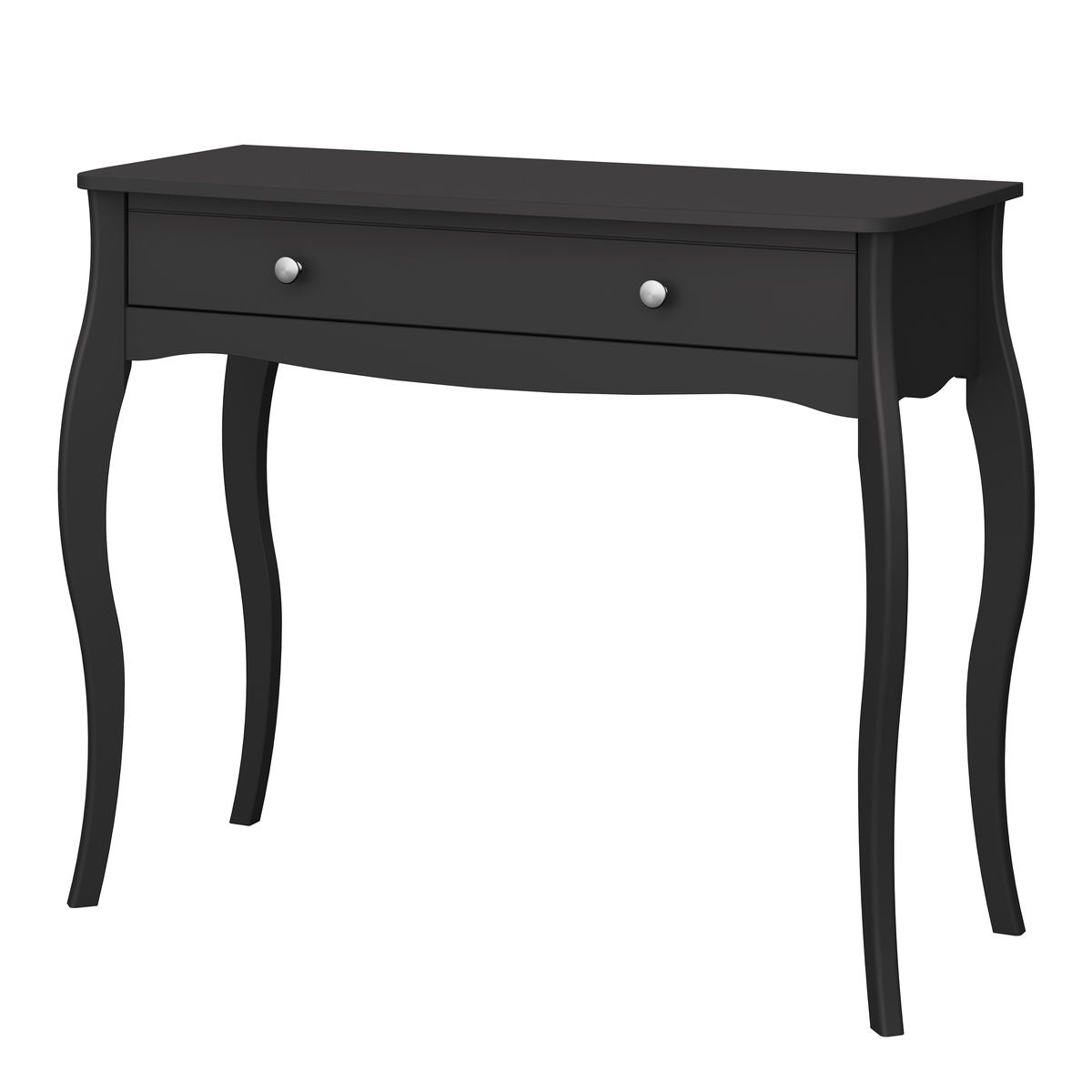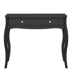This Provence-inspired Baroque Dressing Table brings a touch of elegance to any bedroom. With delicate detailing, rich black finish and stainless steel handles, this piece works well with any style of room. The single drawer offers great storage space for makeup, jewellery or other such items, helping to keep them organised and within easy reach. The Dressing Table is best matched with the Baroque Dressing Table Stool and Mirror.