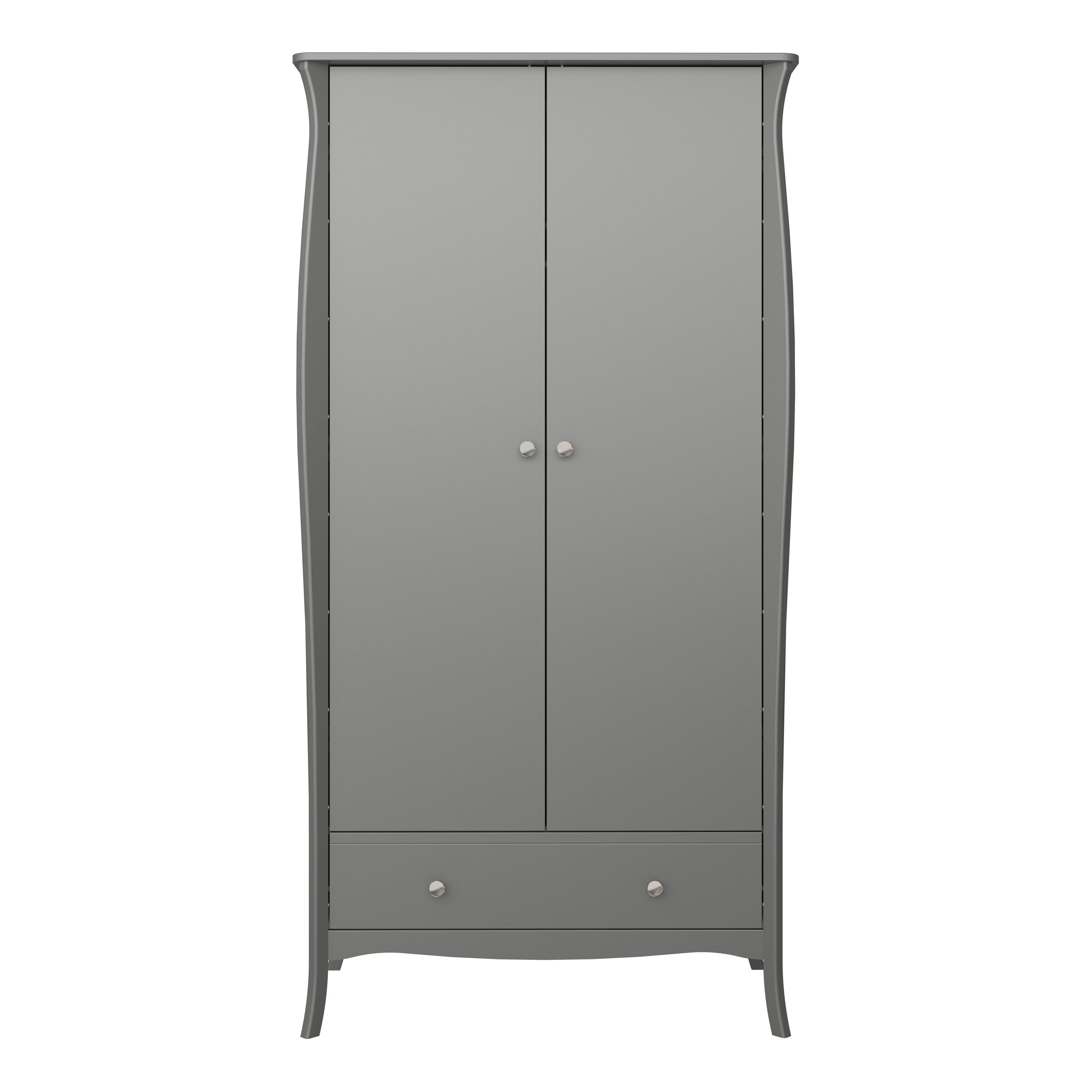 This Provence-inspired Baroque Double Wardrobe brings a touch of elegance to any bedroom. With delicate detailing, grey finish and stainless steel handles, this piece works well with any style of room. This classic wardrobe offers two doors of hanging space, and a drawer ideal for storing folded items of clothing. Choose other items from the Baroque range to complete the look.