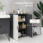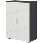 A subtle dash of impact welcomed into your space with . This bathroom storage cabinet, with a dark grey body and light grey doors is given a touch of extra character with the embossed lines on the doors - say hello to something unique this season and beyond. Two doors safely protect inside: two shelves create three storage areas; each shelf is adjustable to three different positions. Anti-tipping straps included. Subtle style done the minimalist way.