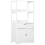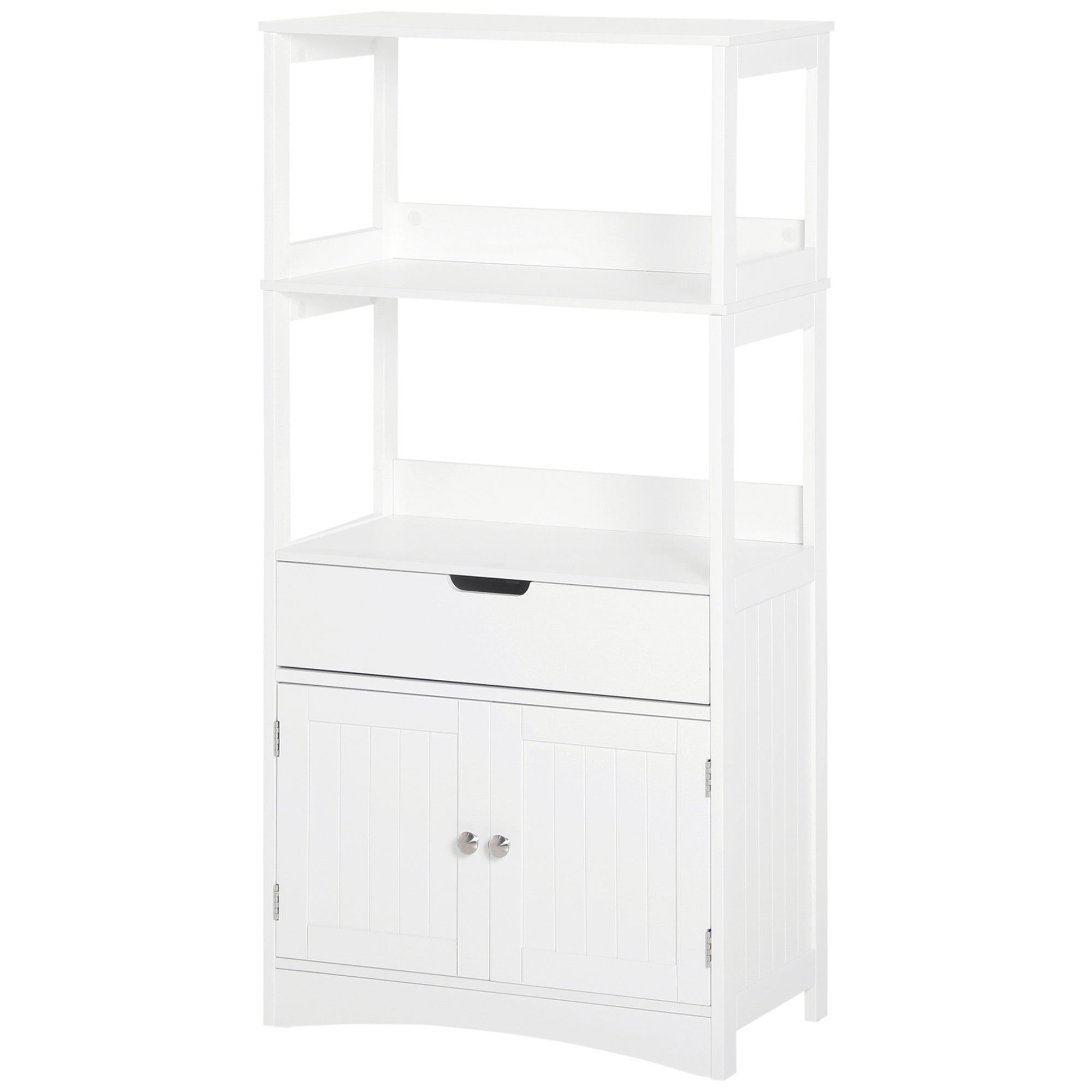 Bathroom Floor Cabinet, Free Standing Kitchen Cupboard with Shelves, Drawer and Doors, Storage Organizer for Living Room, White