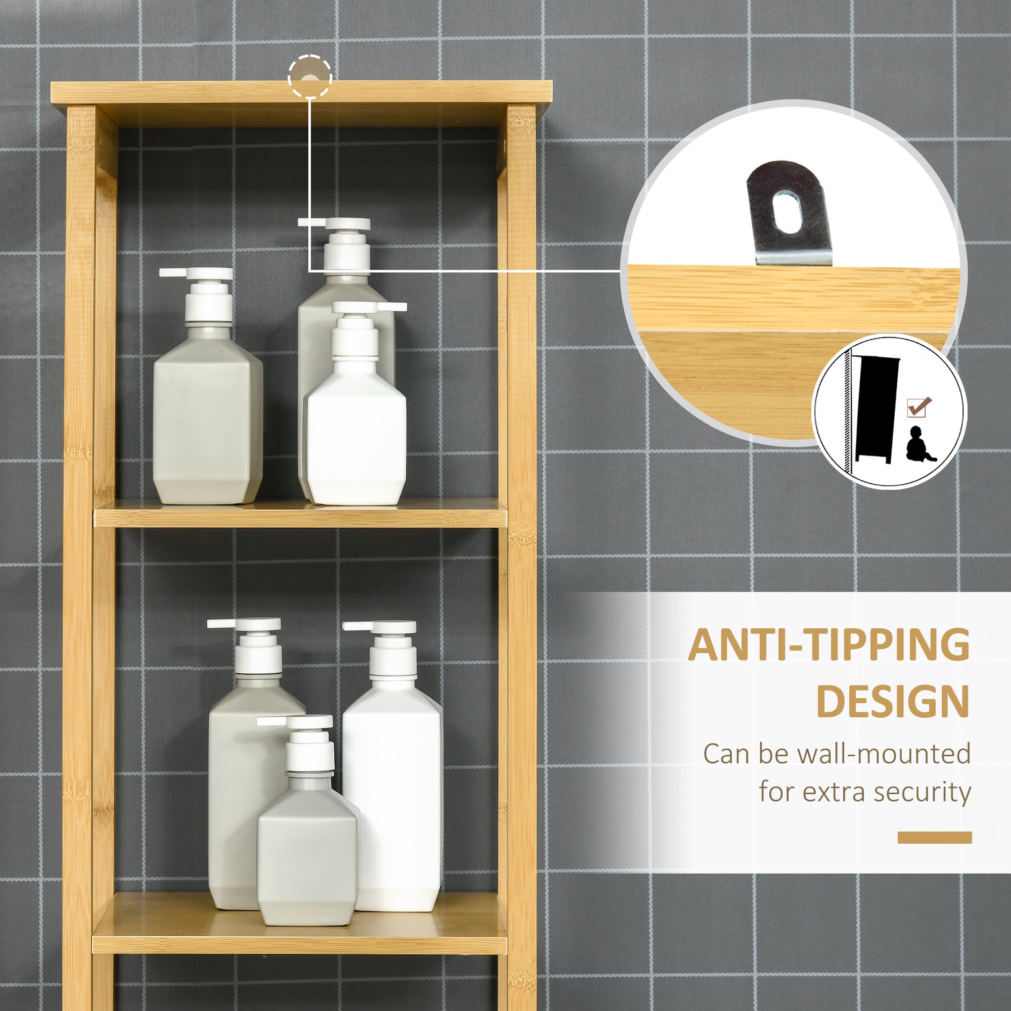 Tall Bathroom Cabinet, Slim Storage Cabinet, Tallboy Bamboo Storage Unit with 3-Tier Storage Shelves and Freestanding Organiser, Natural