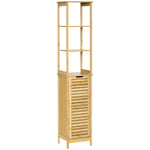This tallboy bathroom cabinet is a must-have for every home. It combines three upper shelves with a bottom cupboard, giving you plenty of storage for the surrounding space. The tall storage cabinet is made from bamboo frame, so it's a strong and sturdy piece, as well as being naturally resistant to rotting and bacterial build-up. It's fitted with a slatted door to promote better airflow. Its tall and narrow design makes it great for smaller spots.