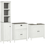 Bathroom set includes tall, floor and sink cabinet with adjustable shelves for lots of storage