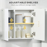 Bathroom Cabinet with Mirror, Double Door Wall Mounted Storage Cupboard Organizer with Adjustable Shelves, White