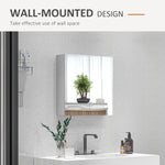 Bathroom Mirror Cabinet, Wall Mounted Bathroom Storage Cupboard with Adjustable Shelf, 60W x 15D x 60Hcm, High Gloss White