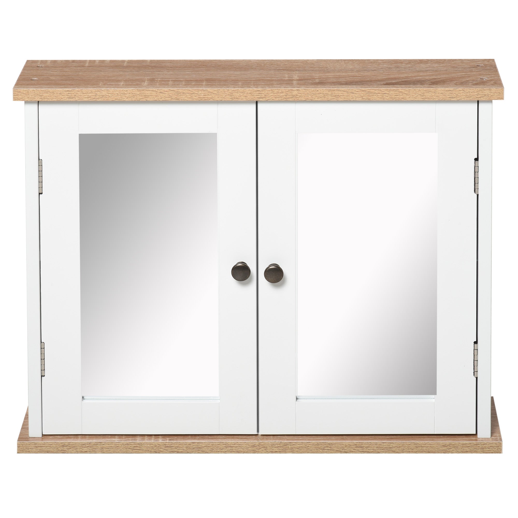 Bathroom Mirror Cabinet Wall Mounted Storage Cupboard with Double Door and Adjustable Shelf, White