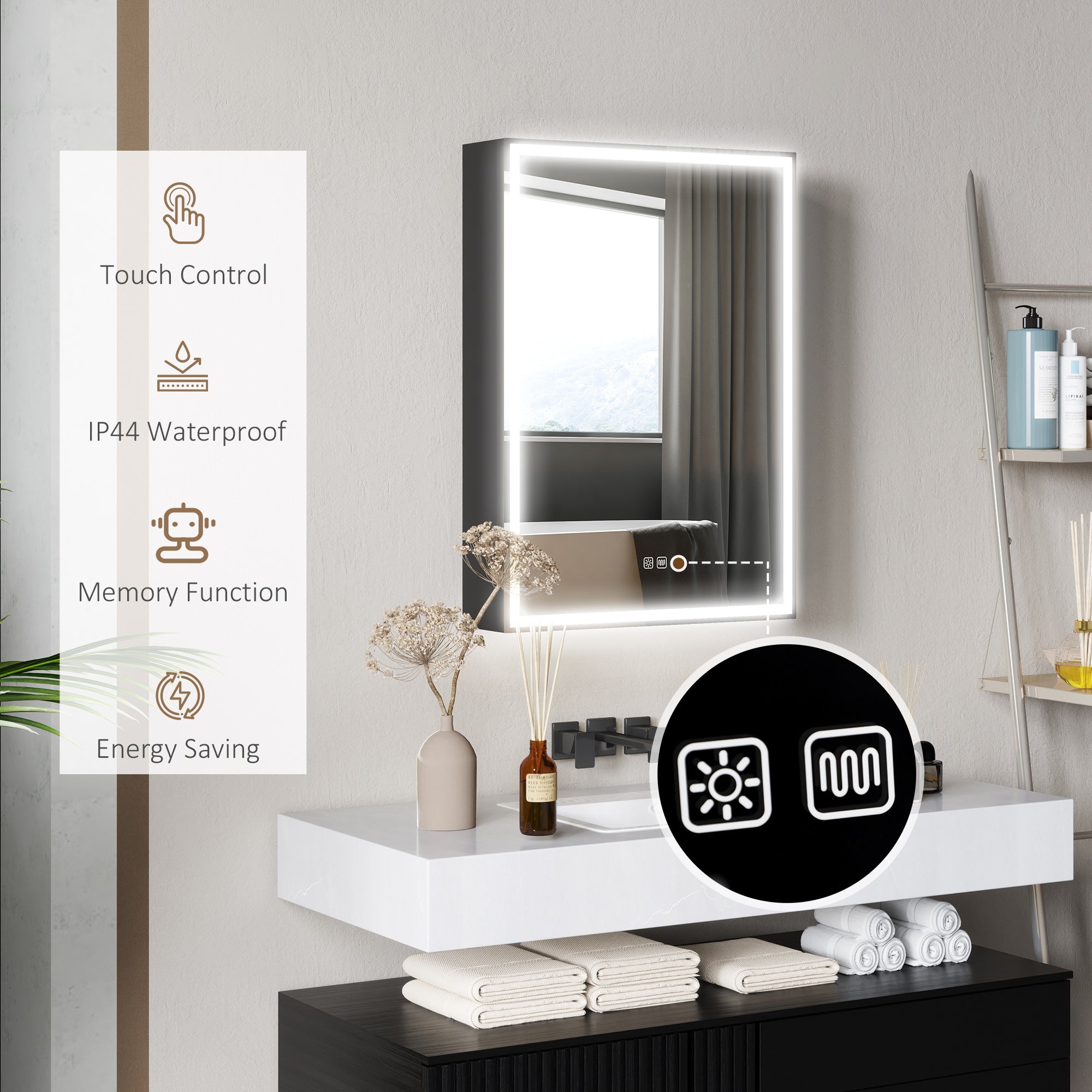 Bathroom Mirror Cabinet with LED Lights and Shaver Socket, 500 x 700 mm Wall Mounted Bathroom Cabinet with Mirror, Demister Pad, Dimmer, 3 Colours, Medicine Cabinet, Black