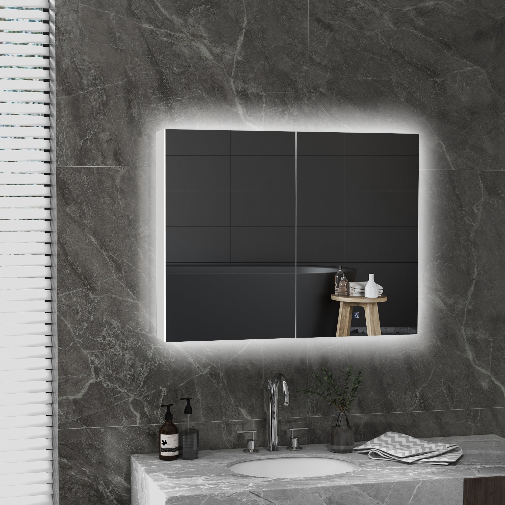 A sleek, polished bathroom essential which allows you to get ready day and night. This on-wall cabinet comes in a two-mirrored door design, with light strips on every side adjust between white, warm white and yellow - great for using at different times of the day. Open the doors to reveal a large storage area and a smaller storage area - both with a middle adjustable shelf to fit differently-sized items. All you need to do is choose where you want to fix it.