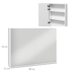 Bathroom Mirror Cabinet with Light, Bathroom Storage Cupboard with Adjustable Shelf, USB Powered, 90x15x70cm, White