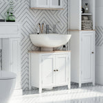 Bathroom Sink Cabinet, Bathroom Floor Storage Cabinet with 2 Doors Pedestal Under Sink Design, Space Saver Organizer Freestanding with Internal Adjustable Shelf, White