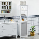 This bathroom cabinet, is designed to fit into small areas thanks to its tall and narrow design. Comes with three top shelves for holding towels and any laundry, with the bottom cupboard offering discreet storage. Cupboard features a shelf for organisation. Its made from MDF, so its durable and sturdy, with the flat base keeping it balanced. Grey and white design is fresh and simple, finished with a polished door knob for a sleek contrast.
