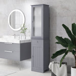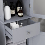 Bathroom Storage Cabinet with 3-tier Shelf Drawer Door, Floor Cabinet Free Standing Tall Slim Side Organizer Shelves, Grey