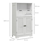 This small bathroom cabinet gives you that extra storage you need, wherever you need. Combines an open shelf, drawers and bottom cupboard - plenty of space. It's made from MDF: sturdy and suitable for everyday use. Comes with anti-tipping straps to attach safely to a wall.