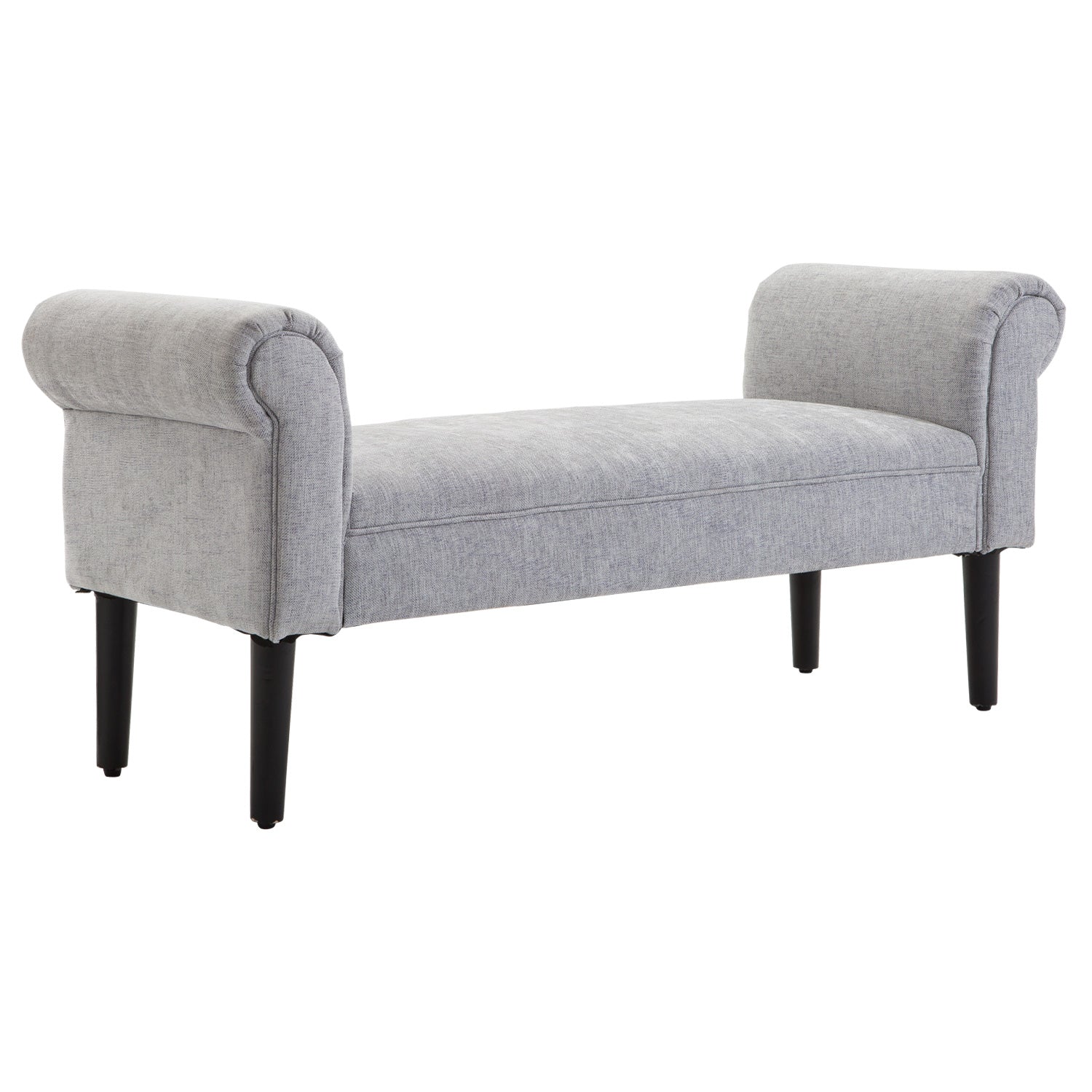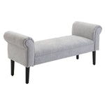 Bed End Bench, Window Seat, Linen Chaise Lounge Sofa with Arm and Wooden Legs for Bedroom, Living Room, Grey