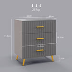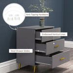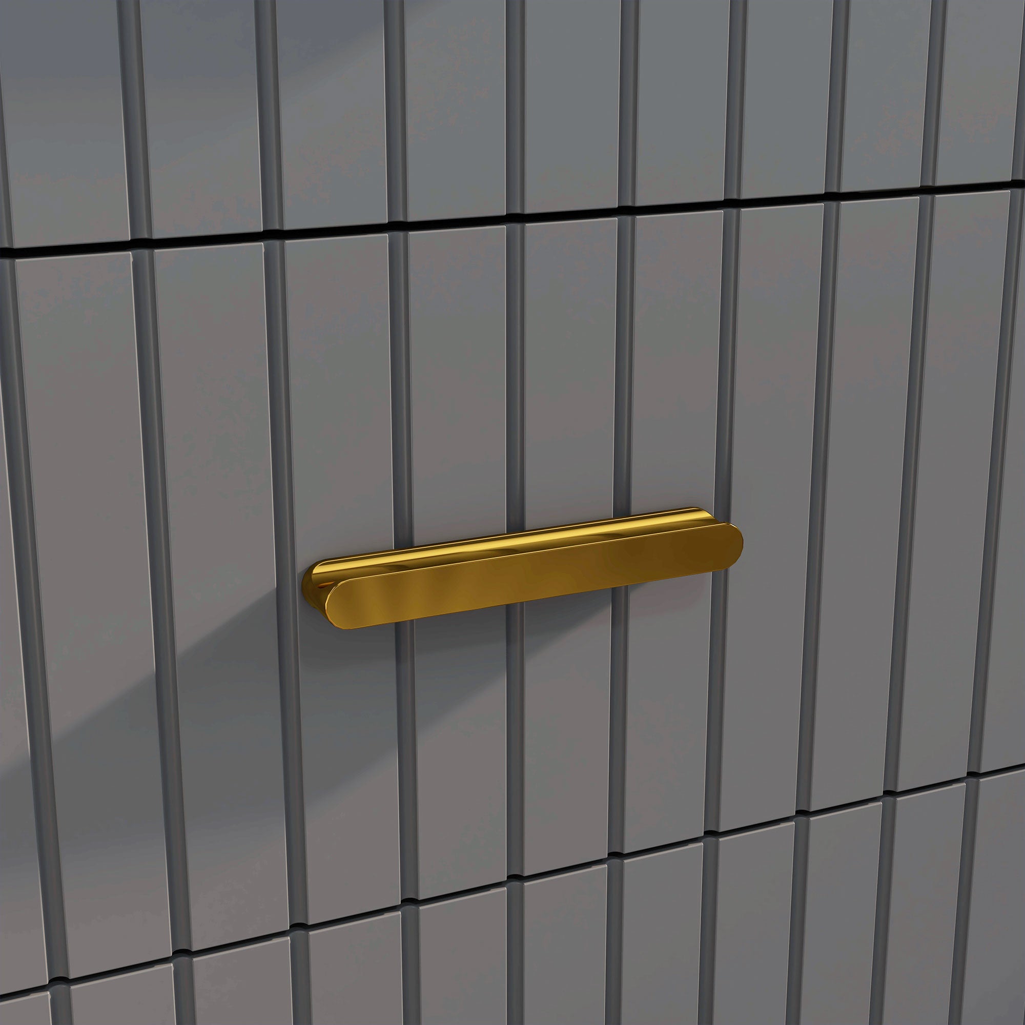 Subtle character in bedroom storage form - look to this three drawer chest. The muted grey colour is brought to life with the gold coloured handles and legs, with the line embossed front for a point of difference. It comes with three drawers so there's plenty of storage for clothing and more. Look to the aluminium legs for a supportive base, with the included anti-tipping straps to safely fix this dresser to a wall.