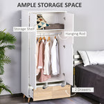 Bedroom Furniture Set, Wardrobe with Hanging Rail, Bedside Table, Floor Cabinet with Storage, Nature Wood Finish and White
