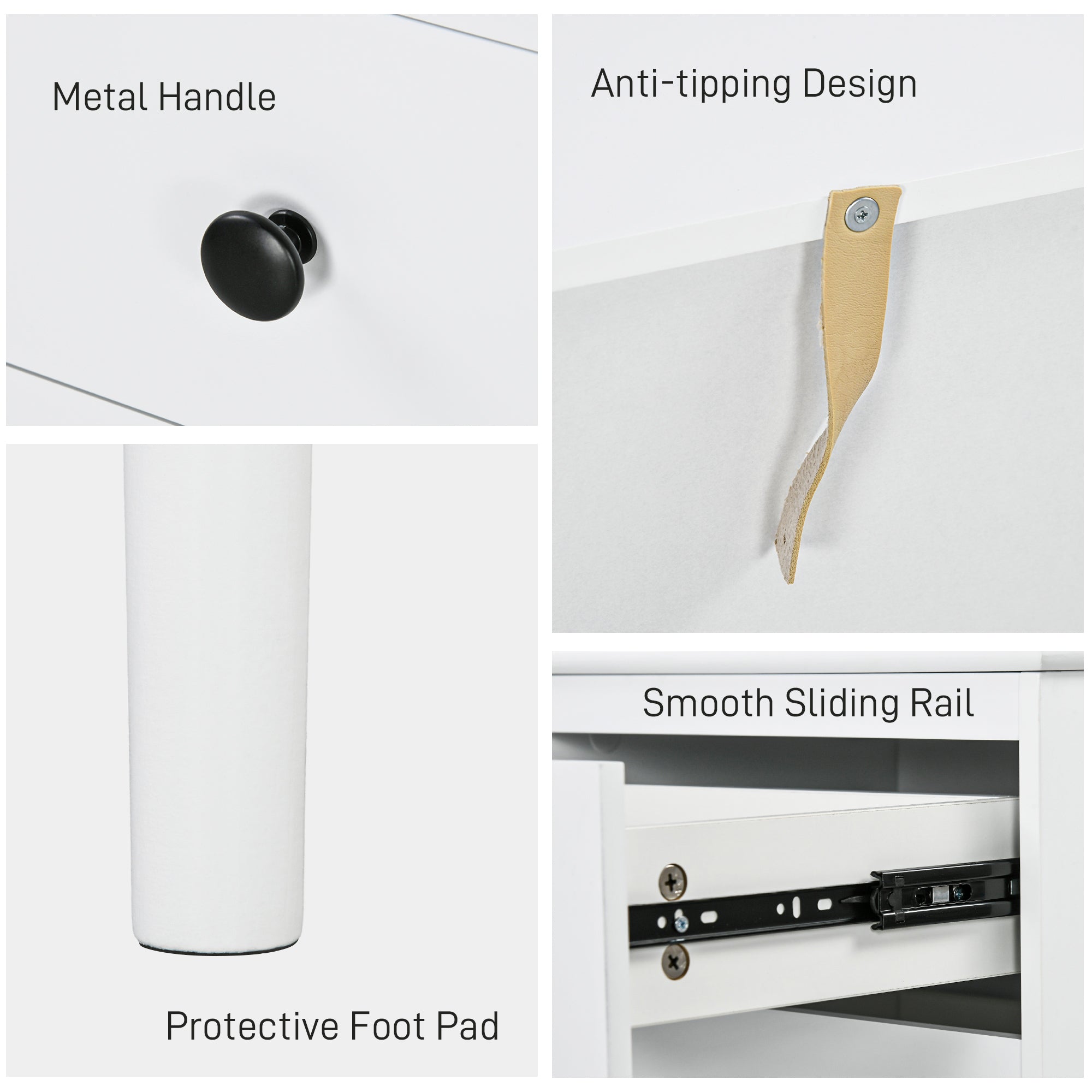 Simple style for all homes, offering plenty of nighttime space: say hello to these two bedside tables. In a clean white boxy design, they are super easy to welcome into your home interior style; the black handles add a touch of striking contrast. Three drawers offer handy holding room, with a flat tabletop to make space for essentials like an alarm clock. Made from particle board, each nightstand is reliable, with anti-tipping straps to securely fix to the wall.