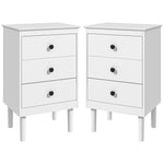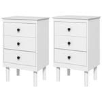 Set of Two Three-Drawer Modern Bedside Tables - White