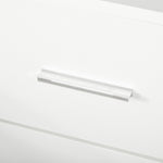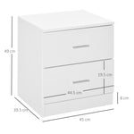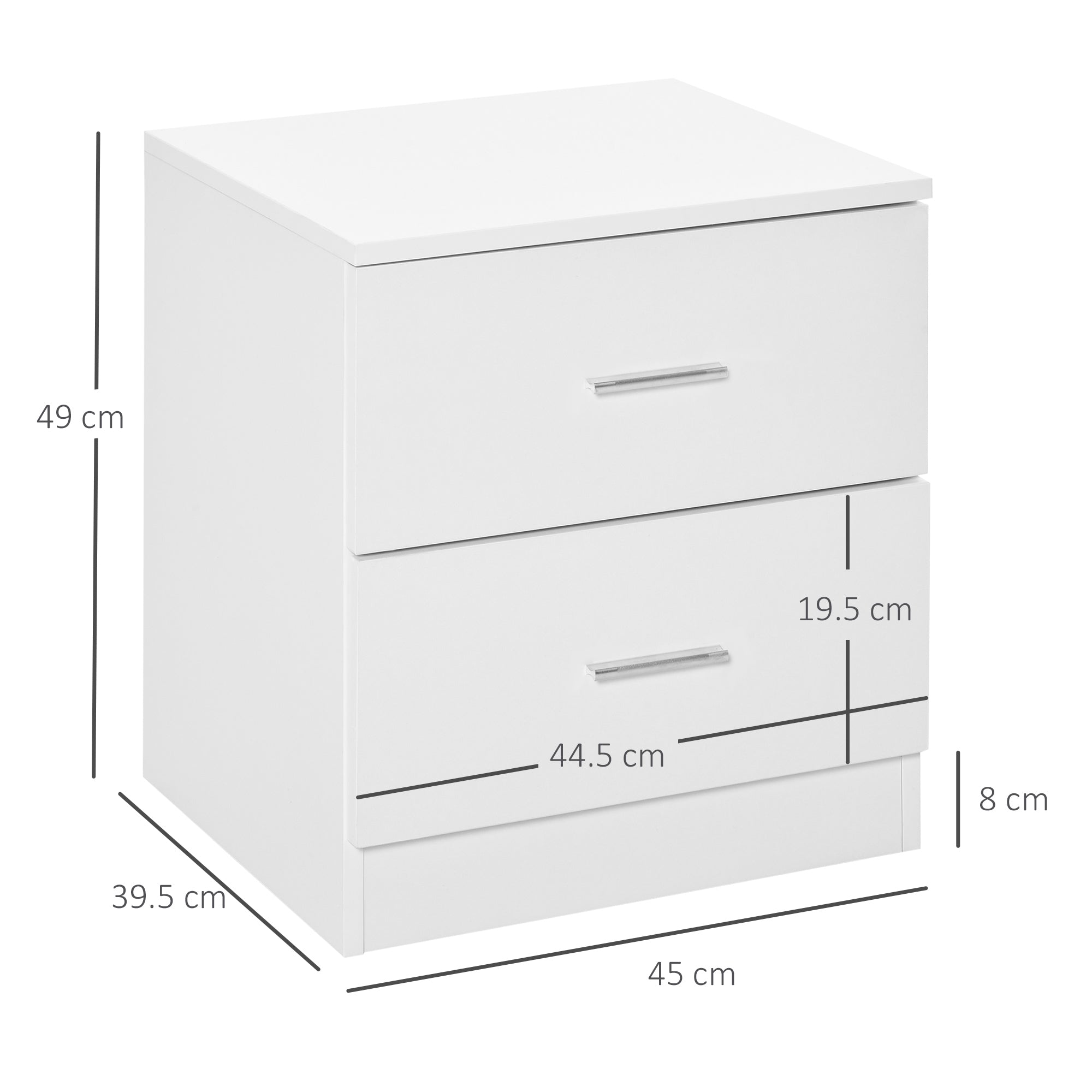 Modern boxy organisation for your bedside - this nightstand. Comes with two drawers for generous amount of storage. Made from particle board, structure is durable, in a clean white finish for versatility. Smooth finish is easy to clean. It's finished with sleek metal handles to open and close both drawers easily.