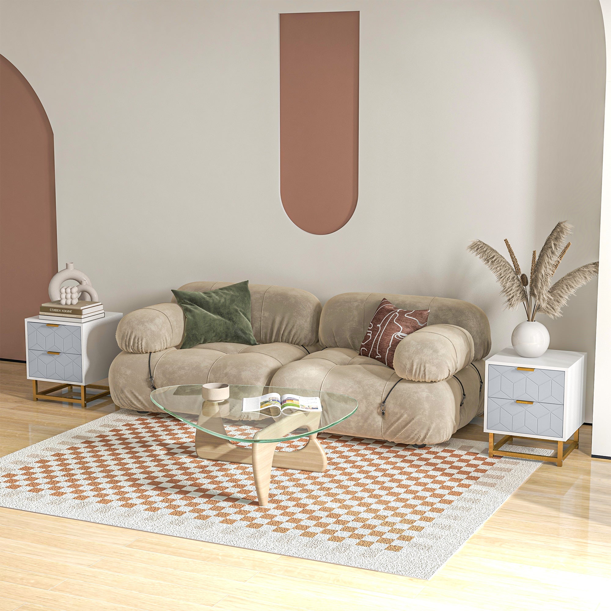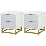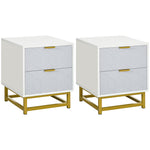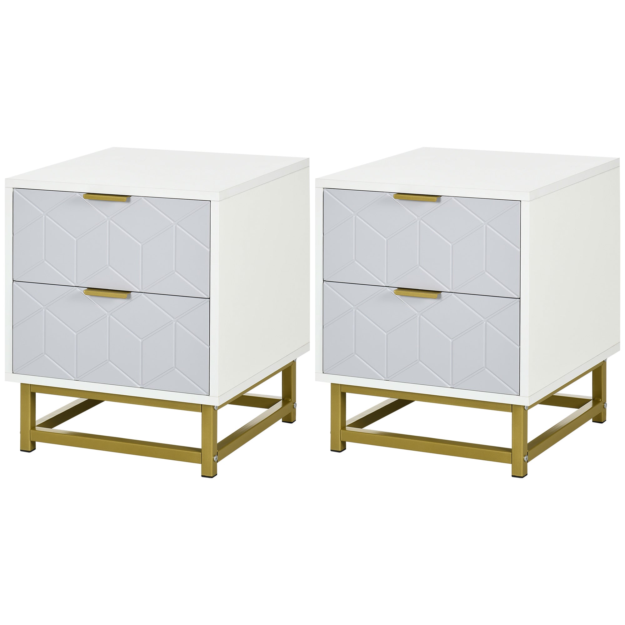Bedside Table with 2 Drawers, Side Table, Bedside Cabinet with Steel Frame for Living Room, Bedroom, Set of 2, Grey and White