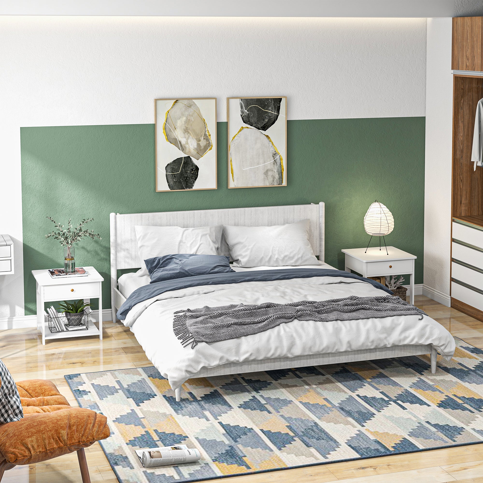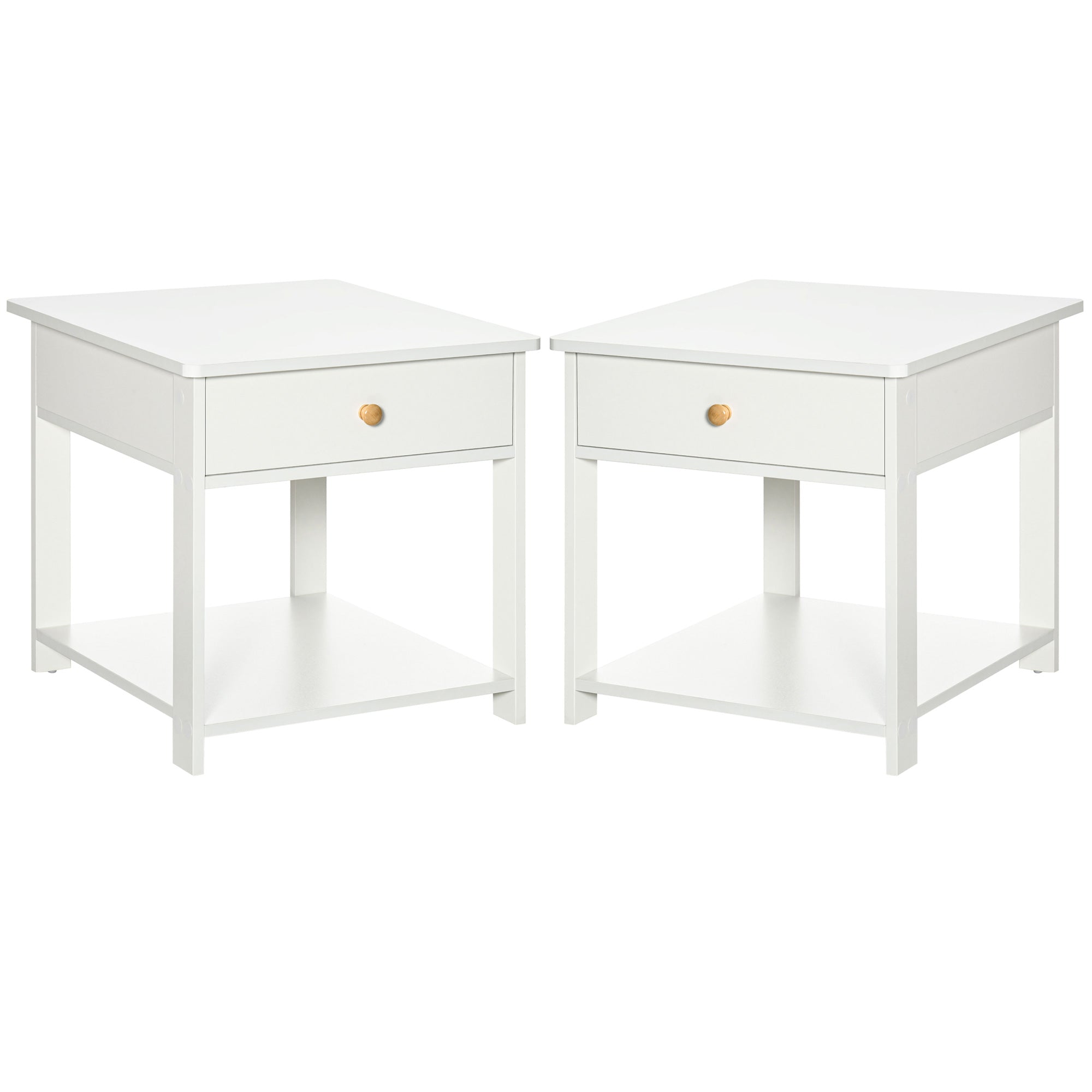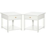 Bedside Table with Drawer and Bottom Shelf, Square Side End Table for Bedroom, Living Room, White, Set of 2