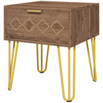 Bedside Table with Drawer, Wooden Nightstand, Modern Sofa Side Table with Gold Tone Metal Legs for Bedroom